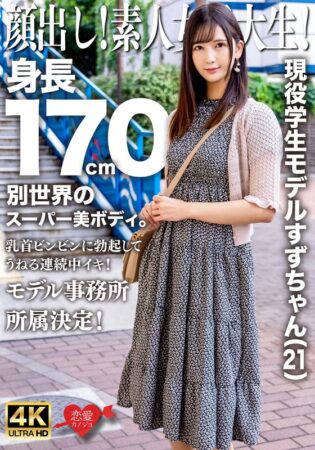 顔出し!素人女子大生!現役学生モデルすずちゃん(21)身長170cm別世界のスーパー美ボディ。乳首ビンビンに勃起してうねる連続中イキ!モデル事務所所属決定!